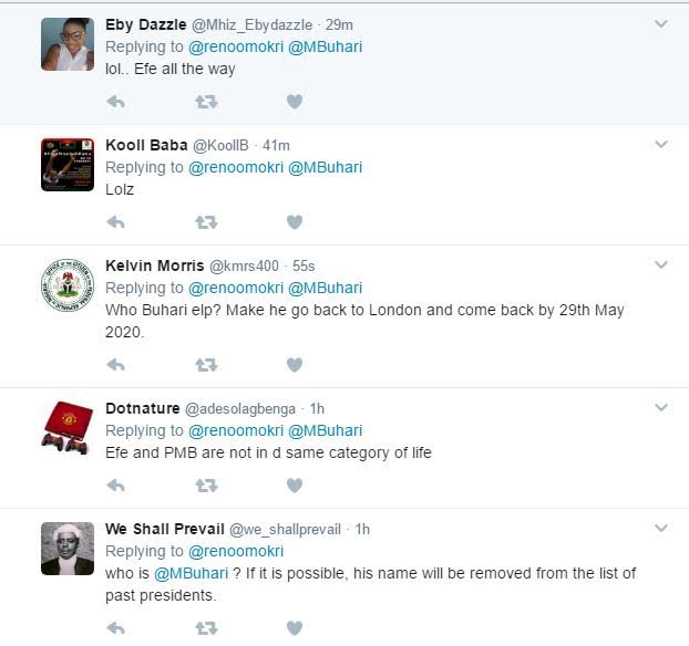 President Buhari. He asked people to retweet for Efe and favourite the tweet for the President.